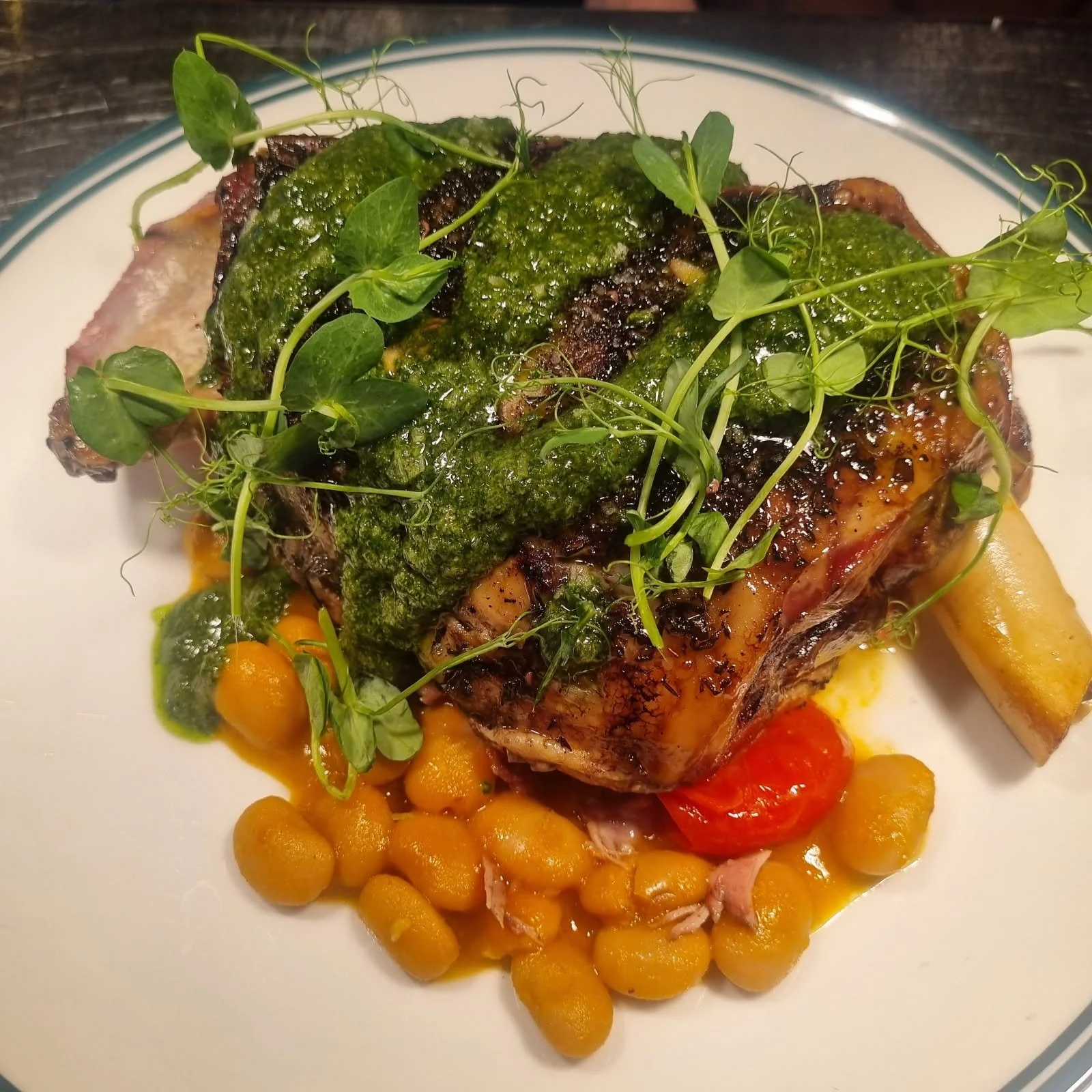 Our lamb shoulder is slow-cooked until tender, rich in flavour and made to be shared. Served with a borlotti bean ragu and finished with salsa verde, it’s balanced, generous and perfect for the Easter table.